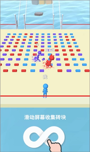 1、在本站安装好搬砖争霸赛并进入游戏后,你可以通过滑动屏幕收集砖块,且仅能收集与自身颜色一致的地砖。