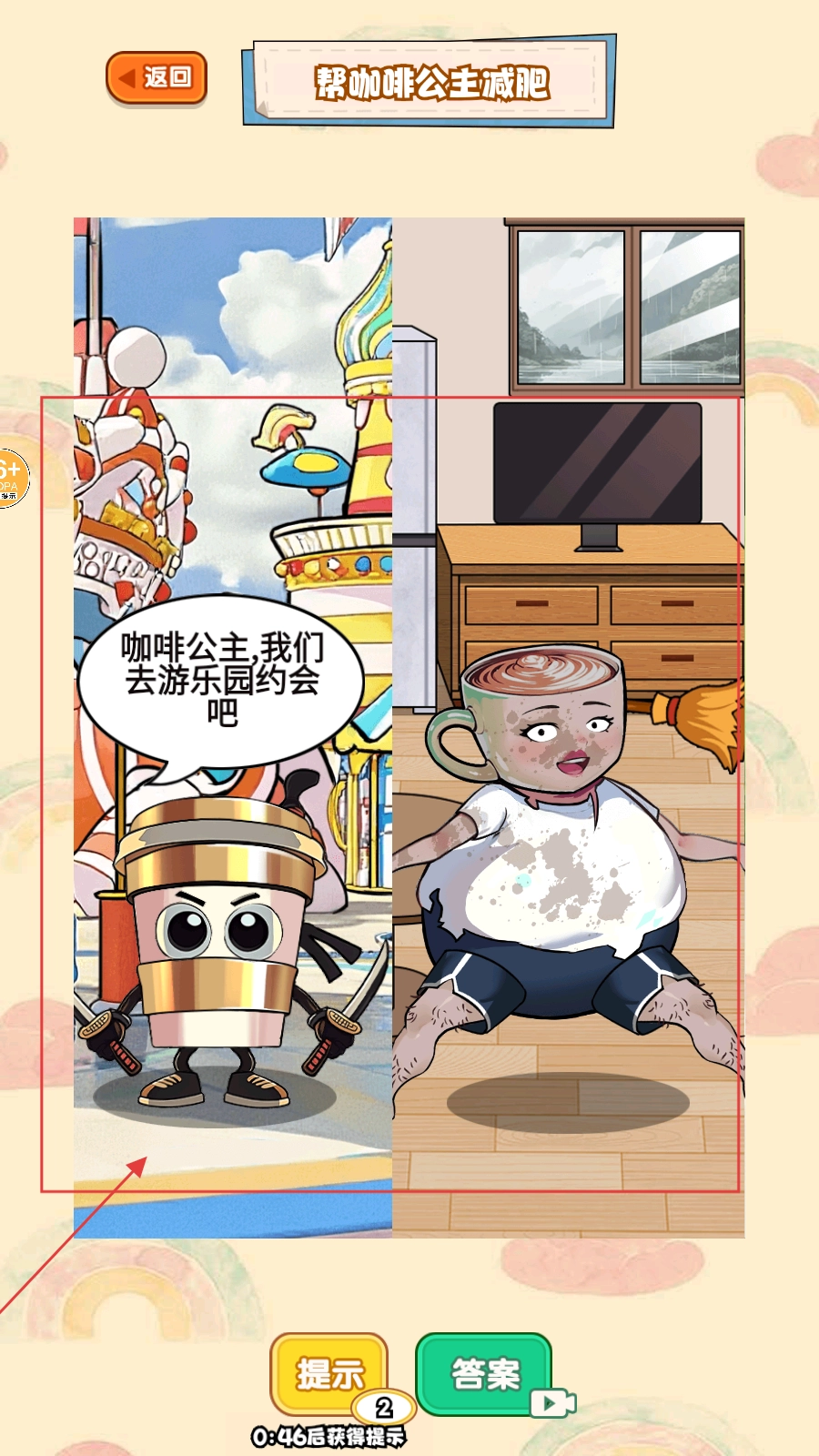 1、选择【帮咖啡公主减肥】这一关卡,开启咖啡公主减肥的剧情挑战。
