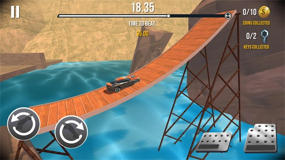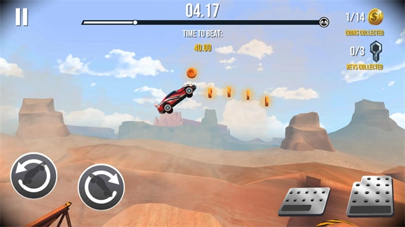 6、控制车辆持续前进以收集金币,成功抵达终点即可通关,达成指定目标还能获得三星通关评价。