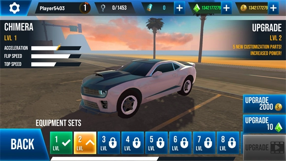 4、点击“upgrade car”按钮可消耗金币升级车辆,每次升级不仅会改变车辆外形,还能提升其属性。