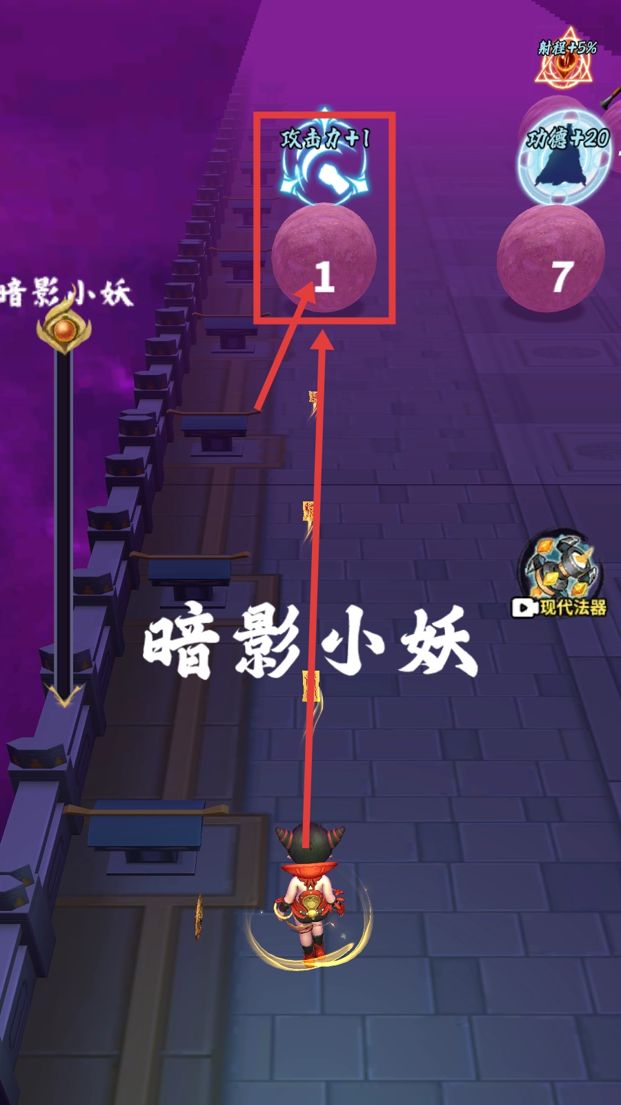 3、在【暗影小妖】关卡里,建议优先选择【攻击力+1】的增益效果,这样能增强对暗影小妖的输出能力,从而更顺利地推进关卡进程。
