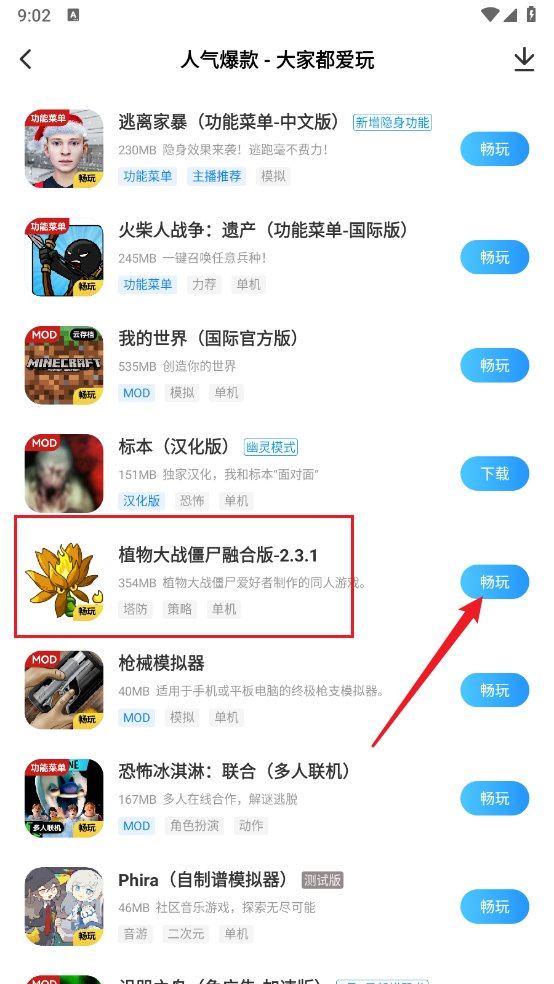 3、如图所示,选择好游戏后点击"畅玩"。