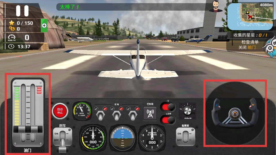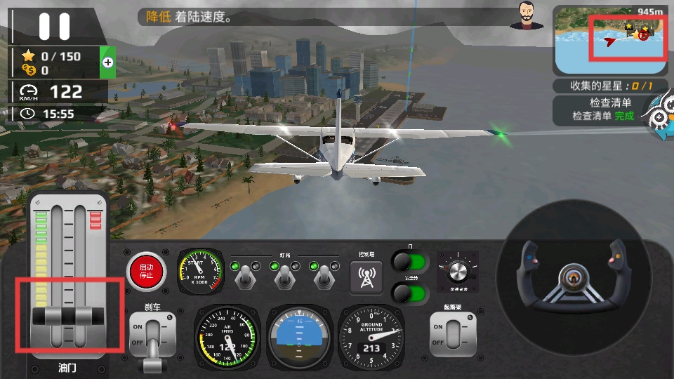 2、飞行时,可借助左侧油门调节飞机速度,利用右侧操控装置把控飞机的方向与姿态,并依据地图指引进行飞行。