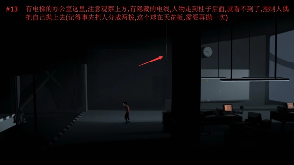 13、在有电梯的这间办公室里,要留意观察上浮的情况,这里存在隐藏的电线,一旦任务进行到走到柱子后面的阶段,就会看不到这些电线了。