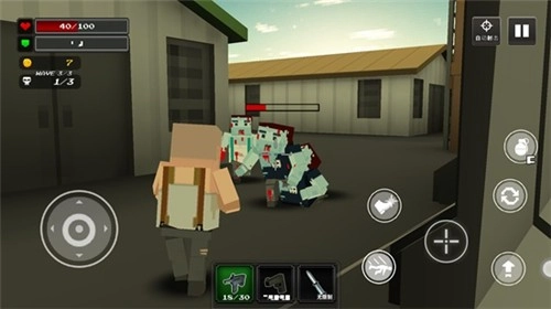 6、进入关卡后,角色会默认出现在一座小镇里,僵尸会接二连三地出现,玩家可以借助屏幕左下方的摇杆来控制角色移动。