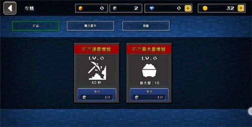 可以选择提升挖矿等级,以此提高采矿效率,让钻石资源的积累速度变得更快。
