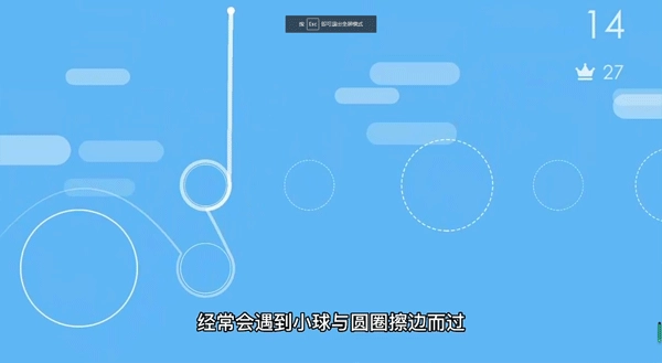 3、游戏里时常会碰到小球和圆圈擦边而过的情况,尽管间距很小,最终的结果却依然是失败。