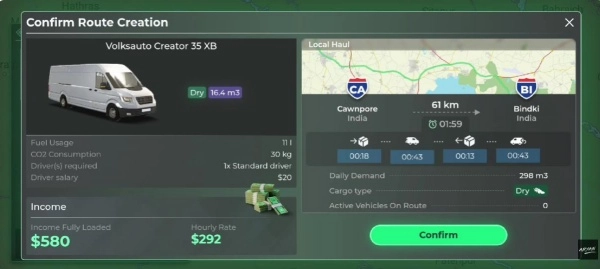 3、市场价格、运输需求与城市经济会随时间动态变化,玩家需灵活调整策略,实现利润最大化,体验真实商业运营挑战。