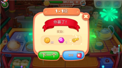 只要满足每位顾客的需求就能顺利通过关卡,通过后会得到金币、钻石和钥匙之类的奖励。