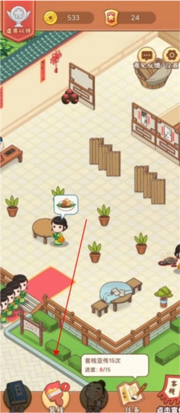 首先打开小小客栈游戏,点击任意键进入游戏内