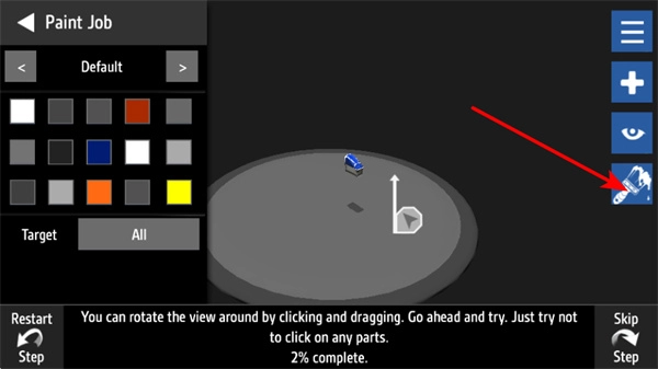 涂装操作时,点击涂装工具按钮,进入涂装界面,然后选择颜色对机械部件进行涂装,以此改变其外观。