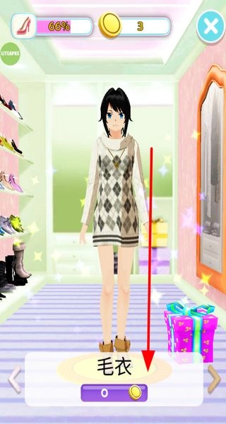 在装扮界面挑选毛衣等服饰,为女友更换穿搭,打造专属形象,提升游戏的互动性。