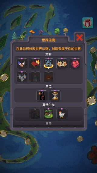 看完新手教程,你就能自由创建属于自己的文明世界了。点击画面下方的各个面板,即可着手进行文明的创造。