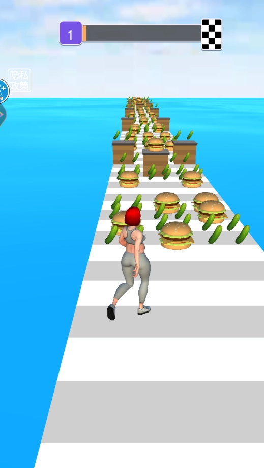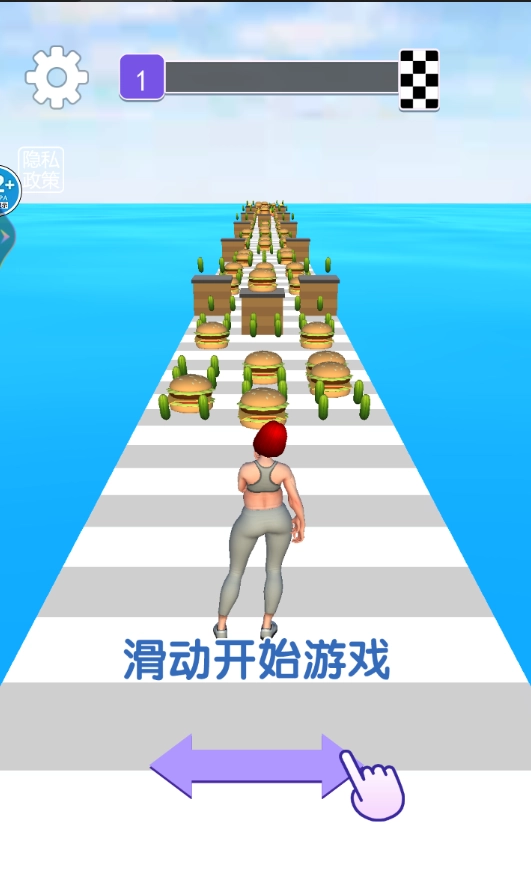 通过滑动屏幕来控制角色的左右移动方向,在角色持续向前奔跑的跑酷过程里,准确无误地接住赛道上出现的各类健康食材,以此来不断积累角色的瘦身进度。