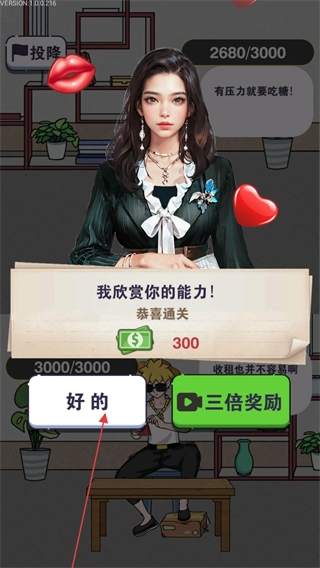 通关之后能够得到美女奖励的金钱,点击“好的”就可以返回游戏主页。