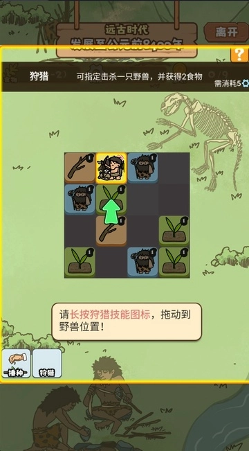 点击左下角狩猎拖至野兽地格即可