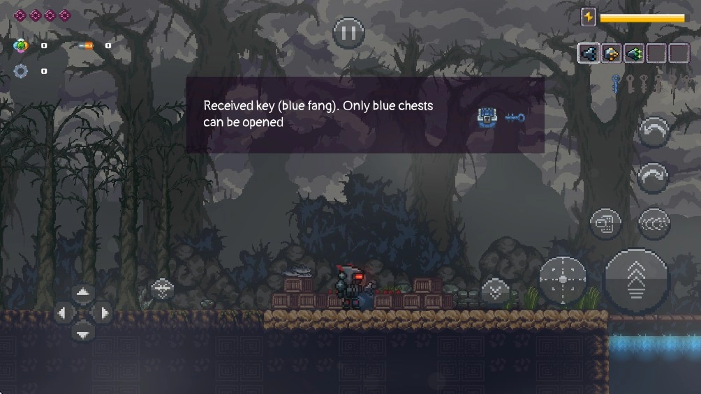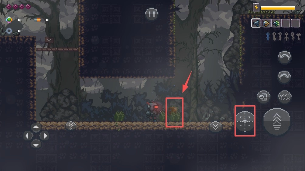 进入关卡后,可借助左侧的虚拟方向键操控角色移动,右侧则设有攻击、跳跃等功能按钮。