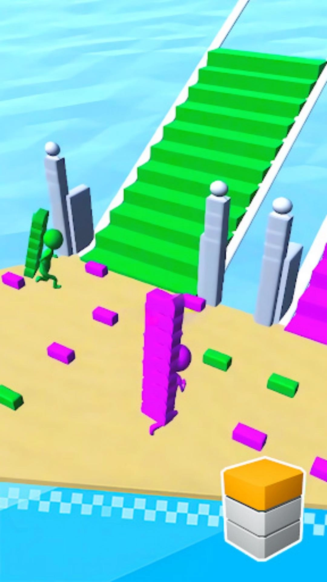 《搭桥竞速》是一款趣味十足的模拟休闲游戏,玩家将在充满挑战的竞技场中与其他玩家展开激烈角逐。游戏的核心玩法是快速收集积木搭建桥梁,率先抵达终点的玩家即可获胜。在游戏过程中,玩家不仅需要争分夺秒提升搭桥效率,还要时刻提防对手窃取积木、干扰搭建节奏。通过灵活运用策略与操作技巧,玩家能在速度比拼与策略对抗中充分体验竞技的乐趣。