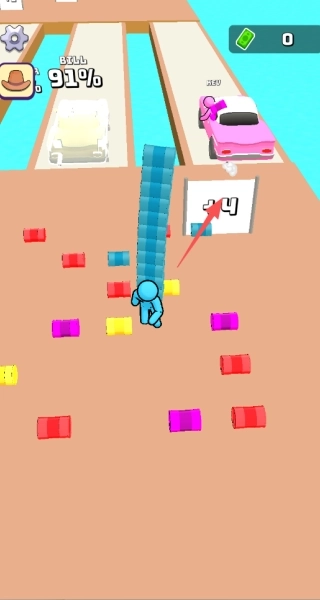 3、快速点击屏幕可取消当前的搭建动作,让角色冲向对手,借助角色间的碰撞暂时阻碍对方行动,从而为自己夺回积木或是转移搭建位置赢得时间。