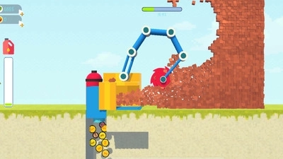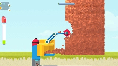 1、按照规定时间操控设备,借助钩子撞击墙体并拆除砖块,达成指定的拆除任务就能通关,进而解锁难度更高的墙体挑战关卡。