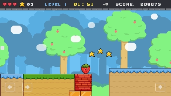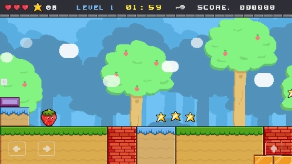 《萌宠闯关记》是一款采用经典像素美术风格的横版动作冒险游戏,以简洁操作承载丰富闯关体验。玩家通过指尖点击操控草莓造型的萌系角色,在充满挑战的关卡中完成跳跃、奔跑等动作,精准控制节奏跨越平台陷阱与障碍机关,最终抵达终点即可解锁下一阶段冒险。
