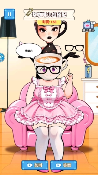 1、要依据关卡的要求与提示,为咖啡小姐挑选合适的服装和配饰,完成各类穿搭任务后,就能解锁更多服装和配饰。