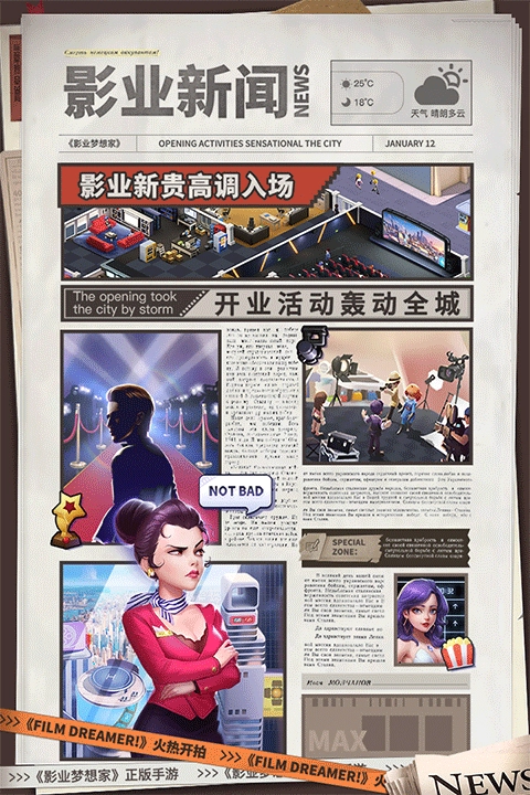 《影业梦想家》是一款相当出色的模拟经营游戏,你可以在这里创办属于自己的影业公司,完成各类精彩挑战。游戏玩法独特又有趣,感兴趣的话不妨来试试!