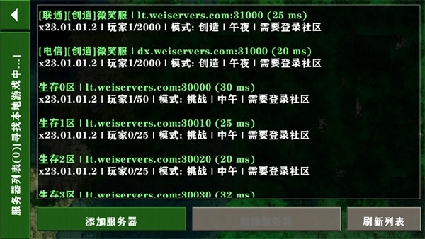3、如需搭建专属世界,点击【添加服务器】输入IP地址、端口及访问密码,即可生成私人领地并邀请好友入驻
