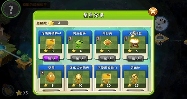 2、通过通关获取星星,之后可在指定界面用星星兑换植物。