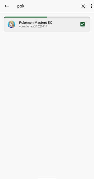 4、在搜索框输入关键字“pok”进行搜索,然后勾选“Pokemon Masters EX”即可。