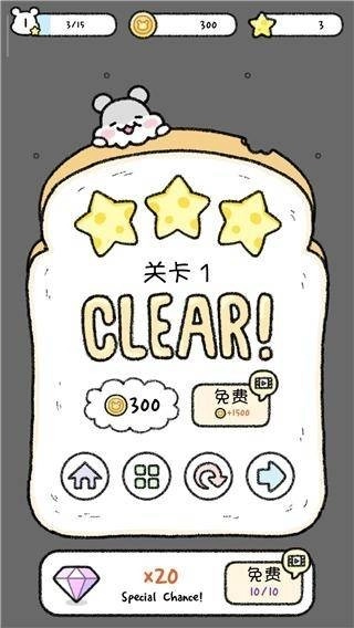 3. 顺利解开所有谜题收集星星,逐步扩建仓鼠的小屋,还能邀请更多动物伙伴前来。此外,通过打扫房间和赚取金币也能让仓鼠保持愉悦。
