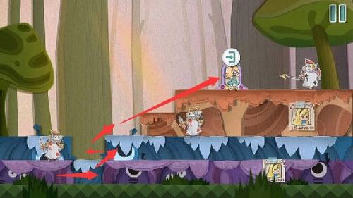 3、把红色方块向右移动,借助较矮的柱子铺设路径,沿着铺好的路往前走,与时间老人交谈。
