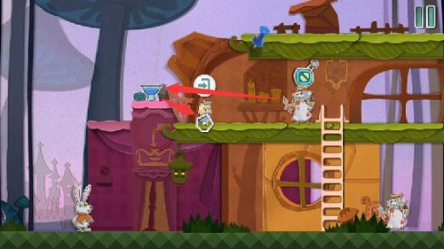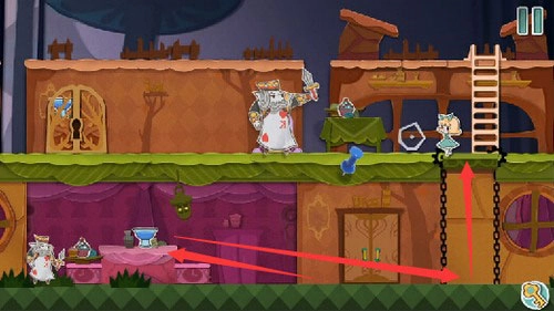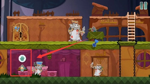 4、先把扑克兵驱赶离开,接着喝下两次变小药水,再进入传送门,就能抵达下一个场景。