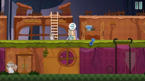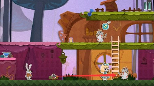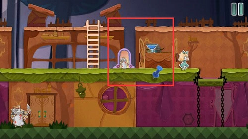 6、站到青色方块上,把红色场景向左移动,将老鼠驱赶到高台之外。