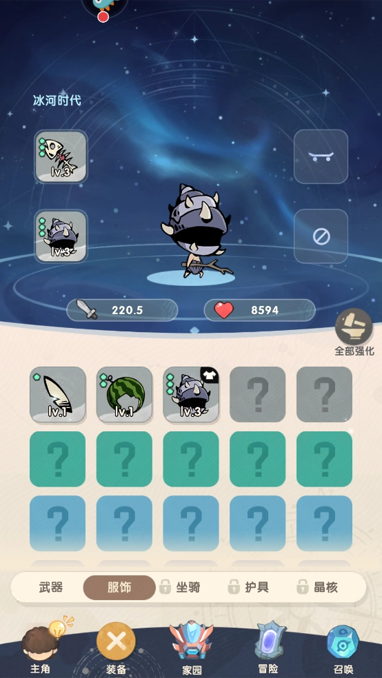 在《魔魔打勇士》这款游戏里,装备被划分成了五大类别,具体包括:武器、服饰、坐骑、护具和晶核。