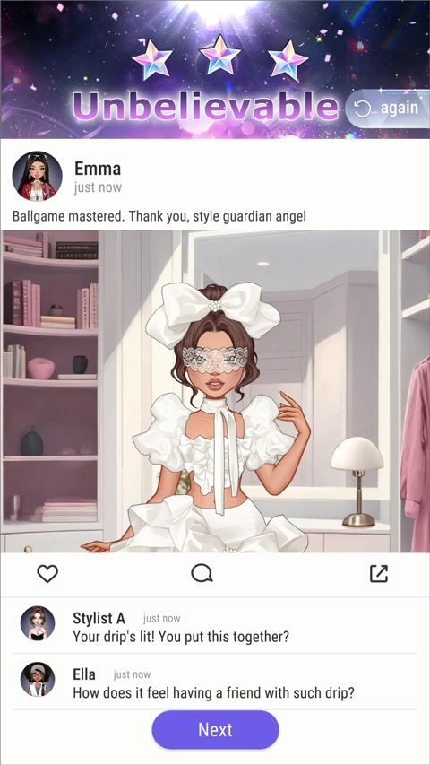 3、装扮完成后直接发布你的造型,就能收获如火焰般热烈的表情符号,感受满满的成就感。