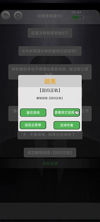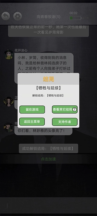 2、游戏是以对话形式进行的,如果觉得文字出现过慢,可以点击此处进行加速
