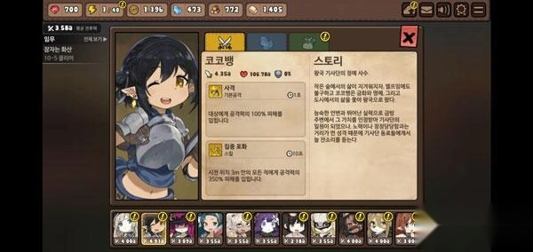 看板娘身为骑士团团长,每次普通攻击只能造成自身攻击力70%的伤害,攻击速度为每秒一次,特点是攻击数值较低但攻速相对较快。她最多能获得30%的防御力加成,属于近战类型的角色。