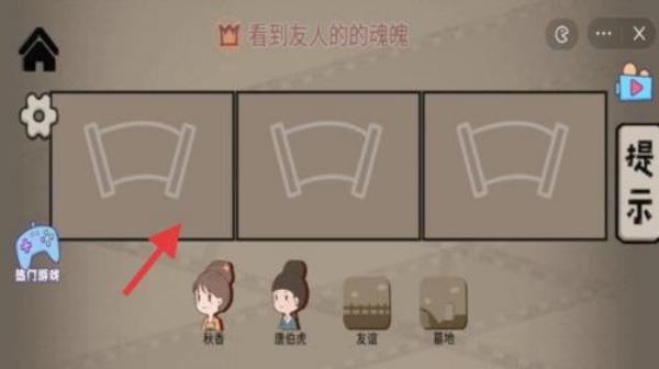 2、收集线索:在特定场景(例如“目睹友人魂魄”)中,通过点击物品(如旗帜的图案)、人物(像秋香、唐伯虎),来收集解开谜题所需的线索。