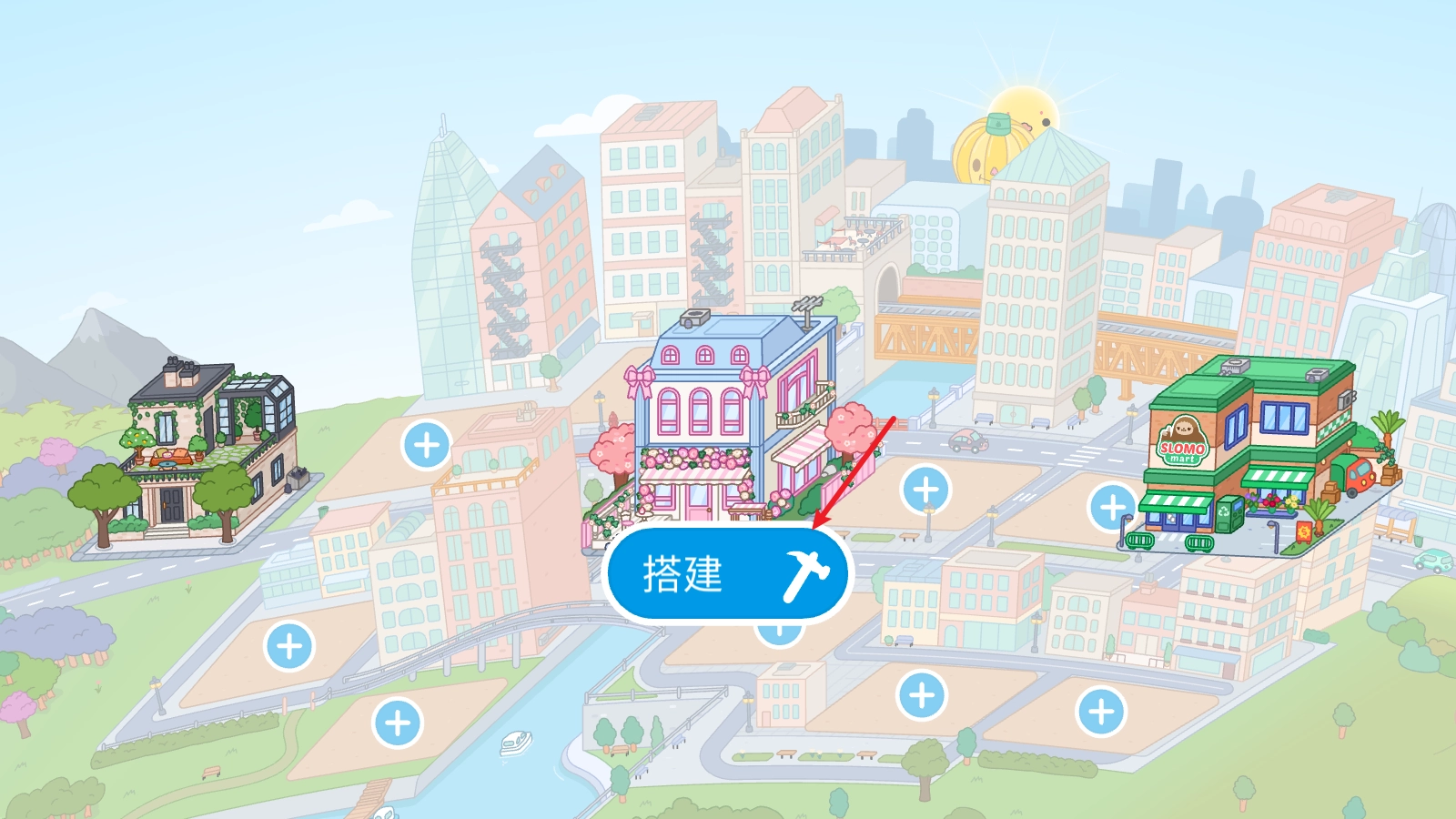 1、首先来到如图场景中,会出现一个建造的按钮。