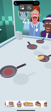 轻敲并长按就能烹饪薄饼,当煎饼从一口锅翻到另一口锅时,玩家得小心把控力度,确保煎饼顺利落入下一个煎锅!游戏过程中,难度会不断提升,让挑战更有趣,同时也能考验你的游戏技巧。点击即可翻动煎锅,长按可使煎锅翻动幅度更大。玩家要让煎饼在锅内持续翻动,如此便能在游戏中逐步得分,创造属于自己的记录,你的最佳游戏分数还会在排行榜上显示哦。